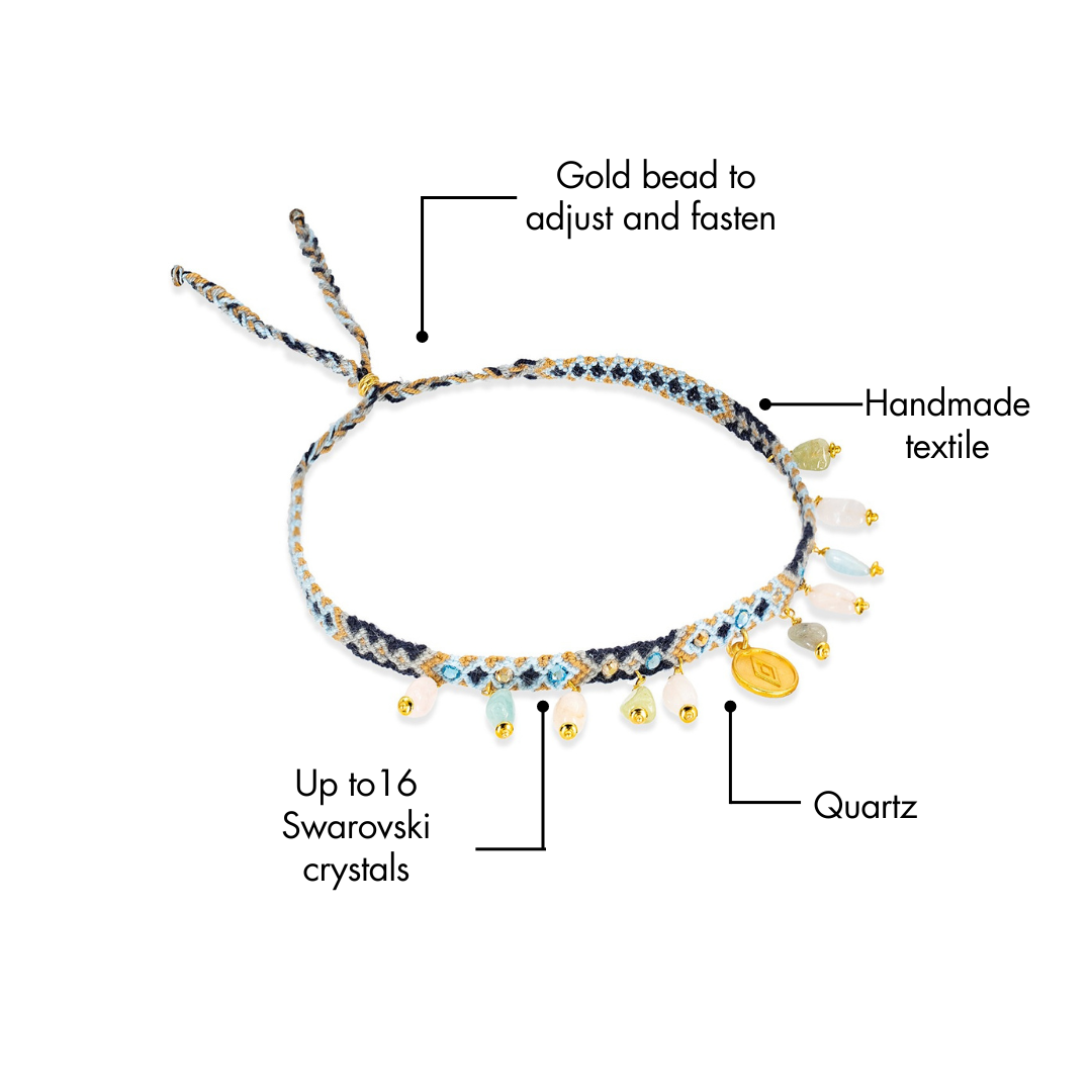 Handcrafted by artisans, adorned with Swarovski crystals that shine and quartz such as citrine, pink amethyst, lepidocrocite radiate their energy and natural beauty, our choker is a symbol of tradition, beauty and ancestral preservation.